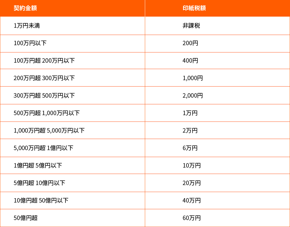 以下に、早見表として契約金額ごとの印紙税額をまとめました。製造請負契約書を作成する際の参考にしてください。